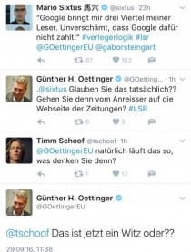 Just days ago, Oettinger called on the publishers to shut down the criticism coming from their online editors. But this does not seem to be enough to him. "Better fight yourself to prevent your plan from failing", he must have told himself when he tweeted: